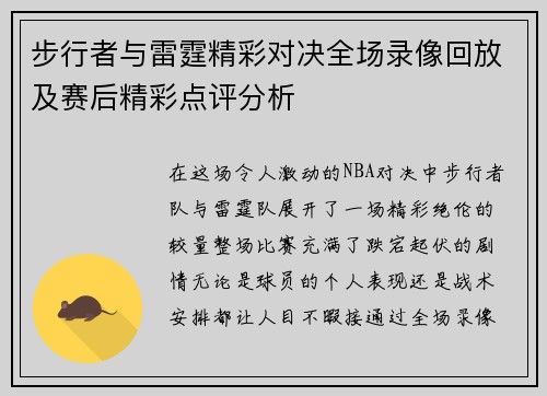 本文将对2018至2019赛季火箭队与公牛队之间的一场精彩比赛进行详细回顾与分析。通过录像回放,我们可以深入探讨比赛的关键时刻、球员表现、战术布置以及双方的历史交锋,全面展现这场比赛的激烈和精彩。文章将从四个方面展开讨论,包括比赛前瞻、关键球员表现、战术分析及比赛结果影响,力求为读者提供一个全方位的理解和深度的解读。 1、比赛前瞻与背景 在2018至2019赛季,火箭队凭借强大的阵容实力和优秀的...